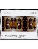 Timbre-poste représentant le plus ancien buste de Jules César. Création et gravure de P. Albuisson. Buste attribué à César, marbre de Dokimeion, milieu Ier siècle av. J.-C., Musée départemental Arles antique-CG13 © R. Bénali.