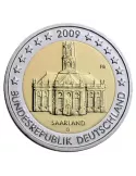 Cette pièce est la quatrième d'une série de 16 pièces de 2 € commémoratives sur les Länder allemands. La représentation de la Ludwigskirche (église du Prince Louis de Nassau), à Sarrebruck. Le mot SAARLAND (Sarre) apparaît sous le monument. Les douze étoiles du drapeau européen forment un demi-cercle sur la partie supérieure de l'anneau externe, interrompu par le millésime 2009 au sommet de la pièce. Le nom du pays émetteur BUNDESREPUBLIK DEUTSCHLAND forme un demi-cercle sur la partie inférieure de l'anneau extérieur. 2 € commémorative - ALLEMAGNE (Atelier F : Stuttgart) - 2009 : Présidence de la Sarre au Bundesrat Pièces conditionnées dans des étuis de protection HARTBERGER®