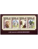 Personnalité. 75e anniversaire de la mort de Robert Baden-Powell (1857-1941), fondateur britannique du scoutisme.Faciales des timbres : 750 F. Imprimés se tenant en petite feuille avec marges illustrées. Les 4 valeurs.