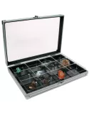 La gamme Vitrine "Alu" de SAFE® Vitrines grand format en aluminium pour présenter et protéger de nombreux objets de collection : minéraux, miniatures, montres, petits flacons, etc. Les objets restent visibles grâce au couvercle transparent. Les emplacements sont en plastique rigide (profondeur 40 mm). 4 anneaux permettent de les suspendre. Des avantages en plus: - Accrochage mural dans les deux sens: horizontal ou vertical. - Corps en aluminium avec couvercle transparent. - Deux fermetures avec charnières - Ouverture facile. - Renfort métal des coins et des angles. Dimensions de la vitrine : 395 x 295 x 45 mm Dimensions emplacements : 257 x 57 x 40 mm 4 modèles disponibles : Vitrine 6 cases : 257 x 57 x 40 mm (réf. 5874) Vitrine 12 cases : 87 x 90 x 40 mm (réf. 5875) Vitrine 24 cases : 65 x 58 x 40 mm (réf. 5876) Vitrine 45 cases : 36 x 49 x 40 mm (réf. 5877)