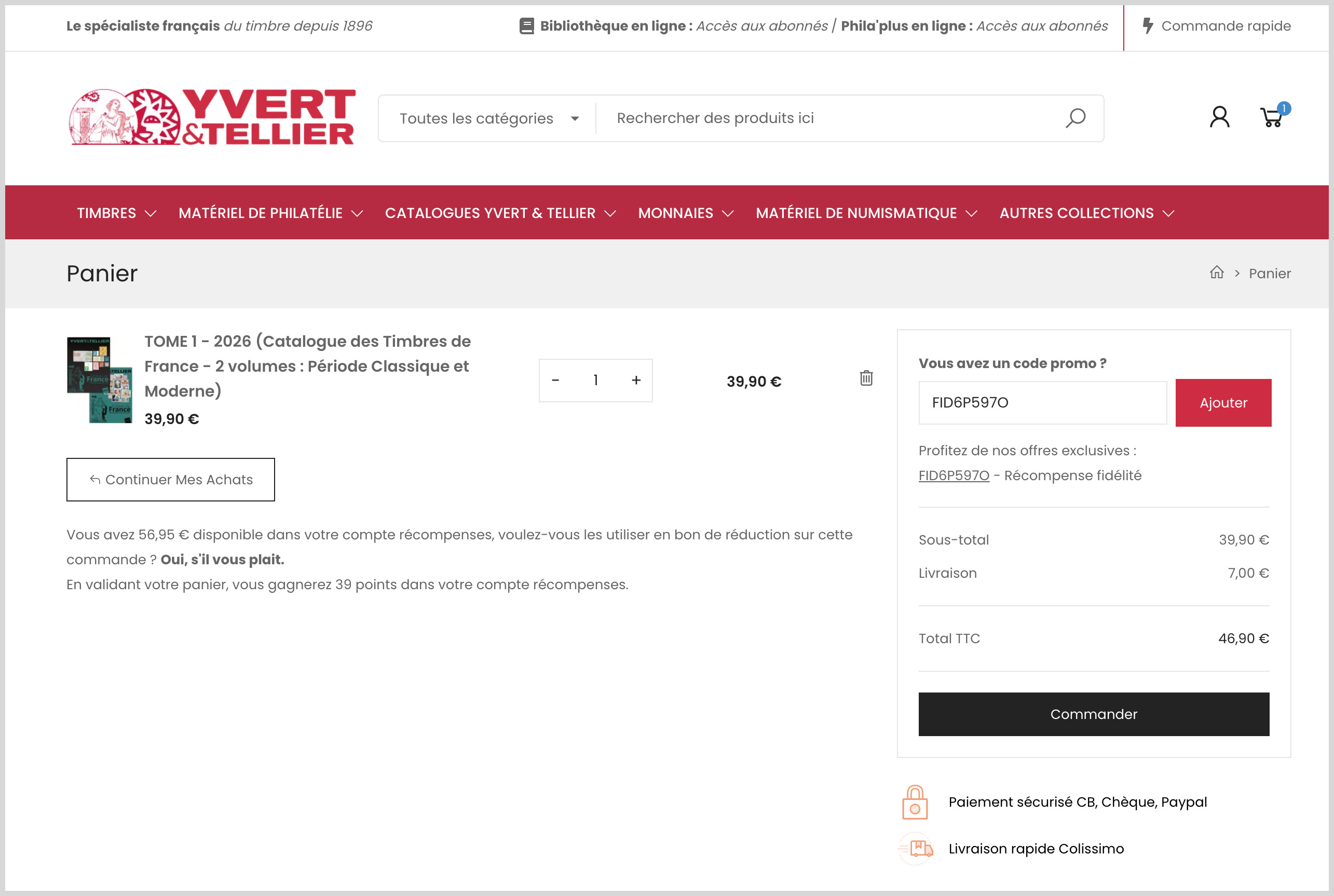 Votre fidélité est récompensée à chaque commande chez YVERT & TELLIER.