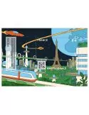 La tour Eiffel s'élève ici au cœur d'une cité imaginaire, sur une planète luxuriante et lointaine, entre modernité et poésie visuelle.