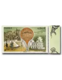 Feuille 150e anniversaire de la poste par ballons montés Composition avec une vue de Paris, du ballon monté Le Neptune et du château de Cracouville